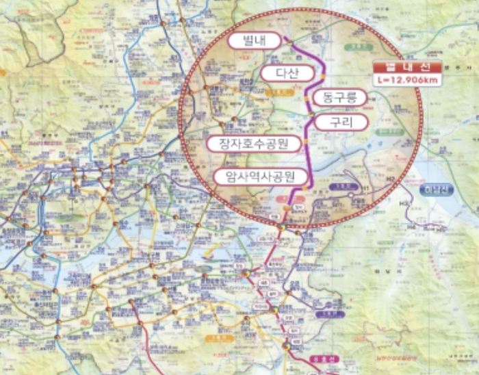 국토교통부에 따르면 별내선은 남양주시 별내지구와 진건지구,구리시의 갈매지구와 다산지구 등 수도권 동북부 지역의 광역교통개선대책의 일환으로 2015년 9월 착공해 9년 만에 개통하는 광역철도다. 약 1조3806억원이 투입됐다.