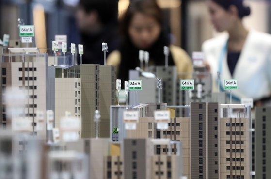 한 분양 견본주택 내 모형도 모습 [사진 = 연합뉴스] 서울을 포함한 수도권 청약 흥행에도 좀처럼 활기를 찾지 못하는 지방 분양시장에서 브랜드·대단지 아파트의 영향력이 갈수록 확대되는 모습이다.