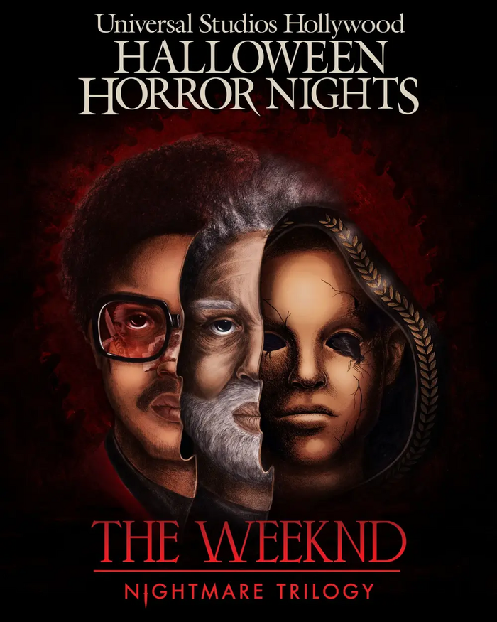 더 위켄드: 나이트메어 트릴로지 포스터/사진=유니버셜 스튜디오 할리우드 공식 홈페이지 빌보드(Billbord) 등 외신에 따르면 지난 7일 위켄드가 핼러윈 시즌에 새로운 앨범을 발매할 예정이며 유니버셜 스튜디오 할리우드의 핼러윈 호러 나이트에서 공포 체험 ‘더 위켄드: 나이트메어 트릴로지(The Weeknd: Nightmare Trilogy)’를 선보일 것이라고 발표했다.