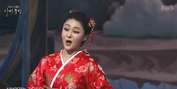 KBS서 방송된 ‘나비부인’. 사진| KBS1 KBS가 제 79주년 광복절을 맞은 15일 첫 방송으로 일본 국가인 기미가요가 나오는 오페라 ‘나비부인’을 송출했다가 사과했다.