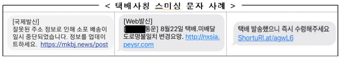 최근 A씨처럼 실생활과 밀접한 택배회사를 사칭한 스미싱 피해사례가 빈번하게 발생하는 데 따른 결정이다. 하반기에도 추석 선물배송을 위장한 스미싱 등 다양한 보이스피싱 범행 시도가 계속될 것으로 예상된다.