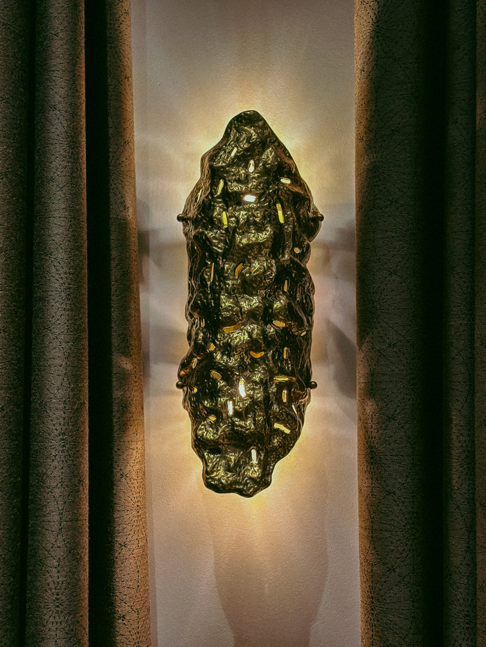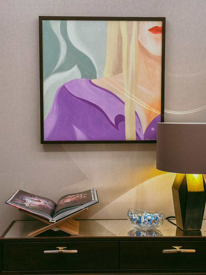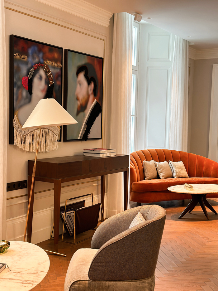 한 층 올라가면 거실 같은 로비가 펼쳐진다. 공간을 화려하게 수놓는 샹들리에,예술의 숨결을 불어넣은 벽면 작품들,곡선형 벨벳 소파가 고급스러움을 더한다.