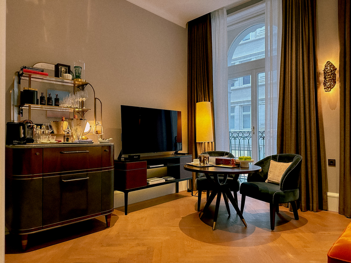 객실 내부 / 사진=권효정 기자 투숙객은 모차르트가 영감을 얻었던 바로 그 창문에서 광장을 조망할 수 있다. 객실 곳곳 숨겨진 예술 작품은 마치 모차르트 선율처럼 감성을 자극한다.