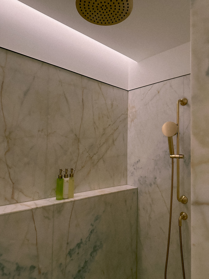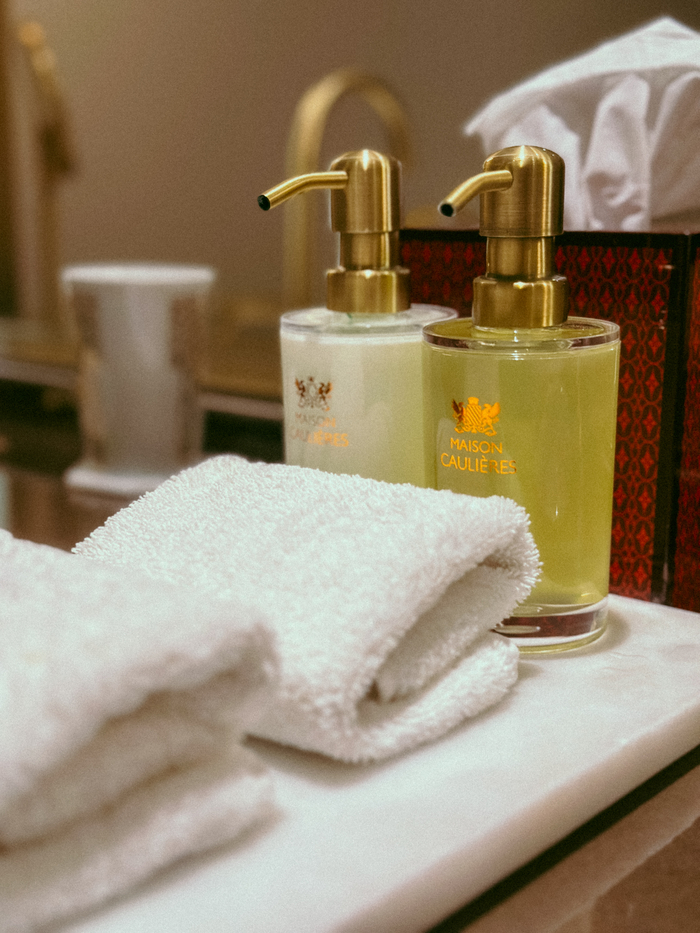욕실 내부 / 사진=권효정 기자 별도로 마련된 넉넉한 크기의 샤워 시설도 편리하다. 욕실의 진정한 매력은 프랑스 브랜드 ‘메종 콜리에르(Maison Caulières)’ 감귤향 어메니티에서 빛을 발한다.