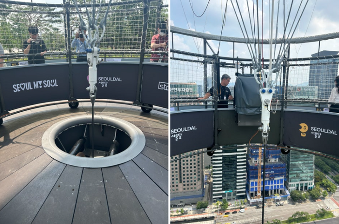 떠오르는 서울달 / 사진= 박한나 여행+ 기자 다음 순서를 기다리기 위해 인근에 마련한 대기 공간으로 이동했다. 폭염을 피할 수 있도록 대기 공간에는 에어컨을 설치해 쾌적하게 탑승 순서를 기다릴 수 있었다. 내부에는 키오스크도 마련했다. 탑승을 원하는 고객은 키오스크를 통해 간편하게 티켓을 발권할 수 있다.