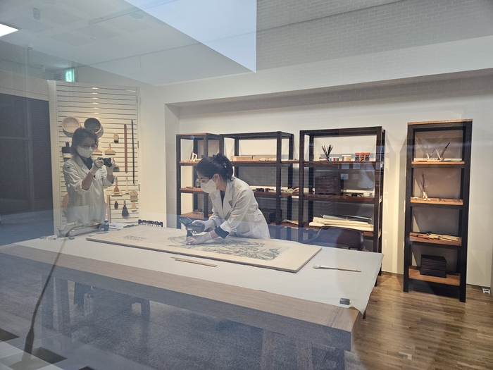 대구간송미술관의 ‘보이는 수리복원실’. 방문객이 문화유산의 수리·복원 과정을 살펴볼 수 있다. 대구 송경은 기자
