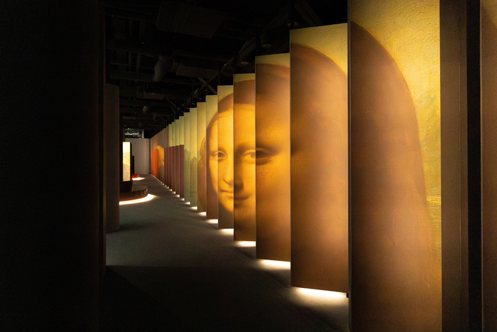 여기에는 프랑스 미디어 전문 회사인 ETC가 기술 파트너로 참여해 매트 페인팅 기법을 선보였다. 매트 페인팅은 영화 산업에서 주로 대형 세트를 디자인하는 데 사용되는 기법으로 레오나르도 다빈치 작품들이 가진 이미지의 결과 질감을 생생하게 재현해 냈다. 이를 통해서 관람객들은 ‘모나리자’를 포함한 다빈치 작품들의 가장 작은 부분까지 육안으로 확인할 수 있다.