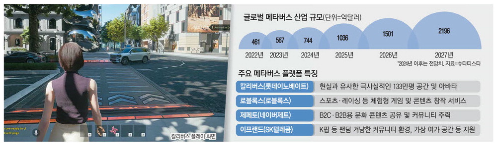 칼리버스는 서울 여의도 면적 절반인 4.4㎢(약 133만평)에 달하는 방대한 가상 공간을 무대로 사람을 꼭 닮은 아바타들이 쇼핑·콘서트 관람 등 다양한 활동을 펼칠 수 있는 메타버스 플랫폼이다. 메타버스 산업이 주춤한 가운데,오랜만에 롯데이노베이트가 승부를 건 대목이다.