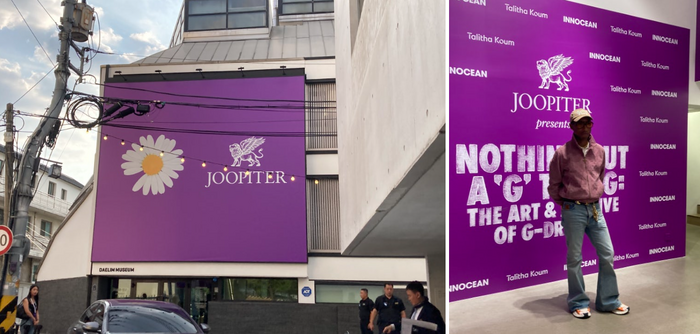 전시 오프닝 행사에 참여한 퍼렐 윌리엄스/사진=김지은 여행+ 기자 현재 대림미술관에서는 무료로 ‘낫띵 벗 어 ‘G’ 탱: 지드래곤의 예술과 아카이브(Nothing But a ‘G’ Thang: The Art & Archive of G-Dragon)‘를 관람할 수 있다. 디지털 경매 플랫폼 주피터(JOOPITER)와 지드래곤(G-Dragon)의 협업 프로젝트로,이 기간 동안 지드래곤이 수집한 다양한 패션 아이템과 예술 작품을 전시한다. 지난 4일 열린 오프닝 파티에는 주피터의 설립자이자 세계적인 아티스트 퍼렐 윌리엄스(Pharrell Williams)와 지드래곤이 참석하기도 했다.