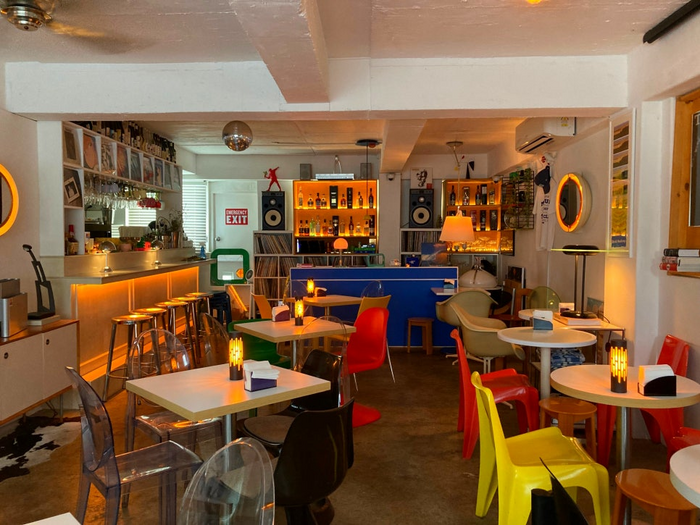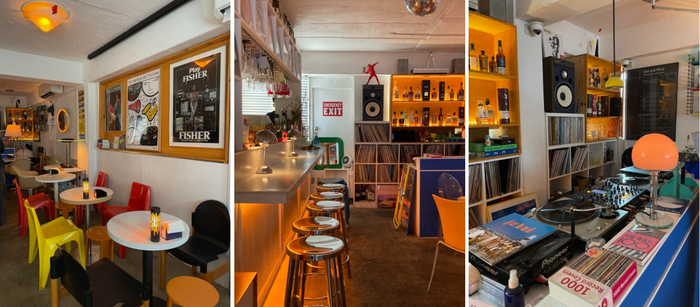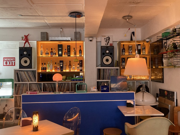 뮤추얼사운드클럽/사진=김지은 여행+ 기자 ‘이렇게나 다양한 것들로 가득 차 있는데 이토록 조화롭다니!’ 바의 첫인상은 감탄에 가까웠다. 빨간색,파란색,노란색 등 알록달록한 의자와 가구를 배치했고 벽에는 여러 모양의 거울과 조명,포스터가 붙어있다. 따뜻하게 빛나는 호박빛 조명 덕분에 전체적인 분위기는 아늑하고 포근하다. 한쪽에 마련된 턴테이블,디제잉 부스와 바이닐로 가득 찬 수납장이 리스닝 바임을 증명하고 있다.