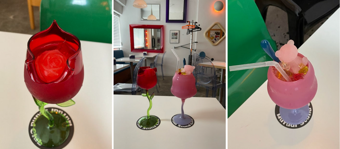 뮤추얼사운드클럽/사진=뮤추얼사운드클럽 공식 SNS (@mutualsoundclub) 뮤추얼사운드클럽의 또 다른 매력은 잔이다. 칵테일,맥주,위스키,와인 등 다양한 주류와 논알콜 음료를 판매하는데,그중 시그니처 칵테일을 주문하면 메뉴별로 특별한 디자인의 잔에 제공한다. 장미,쿠키,튤립 모양 등 독특하고 예쁜 디자인에 반해 잔을 보고 메뉴를 결정하는 손님도 많다고. 그중 직접 맛본 두 가지 추천 메뉴를 소개한다.