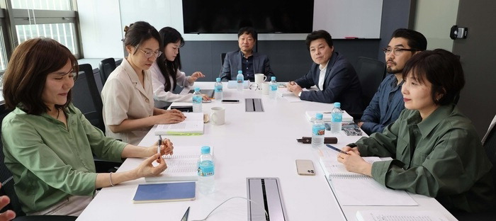 지난 6월 제25회 이효석문학상 심사를 앞두고 서울 광화문의 첫 미팅 모습. 왼쪽부터 반시계방향으로 편혜영 소설가,이지은 문학평론가,민가경 이효석문학재단 간사(문학평론가),방민호 이효석문학재단 이사장,전성태 소설가(심사위원장),박인성 문학평론가,정이현 소설가.