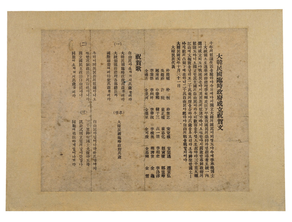 대한민국 임시정부 성립 축하문.