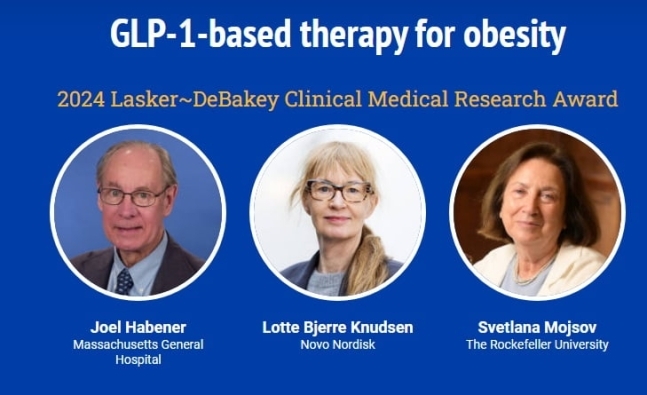 20일 미국 래스커상(Lasker Award) 재단은 미국판 노벨생리의학상으로 불리는 래스커상 올해 수상자로 조엘 하베너 미국 메사추세츠종합병원 교수,스베틀라나 모스조프 미국 록펠러대 교수를 선정했다고 밝혔다. 재단은 “이들의 헌신적 노력으로 수 많은 비만 환자들의 건강이 나아졌다”며 “GLP-1을 활용한 새 블록버스터 약물을 탄생시켰다”고 설명했다.