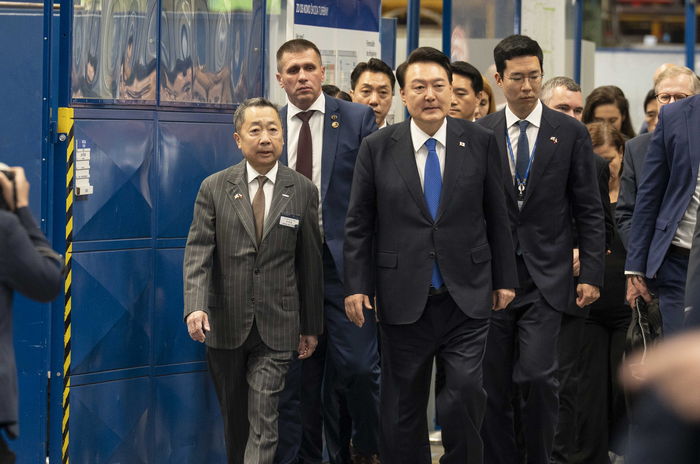 이날 두산스코다파워에 도착한 윤석열 대통령은 박정원 회장의 안내로 두산스코다파워의 증기터빈 생산 시설을 둘러봤다. 이어 윤석열 대통령은 페트르 피알라 총리와 함께 두산스코다파워가 제작한 터빈 블레이드에 기념 서명을 했다. 해당 터빈 블레이드는 체코 두코바니 원전에 공급될 제품과 동일한 모델이다.