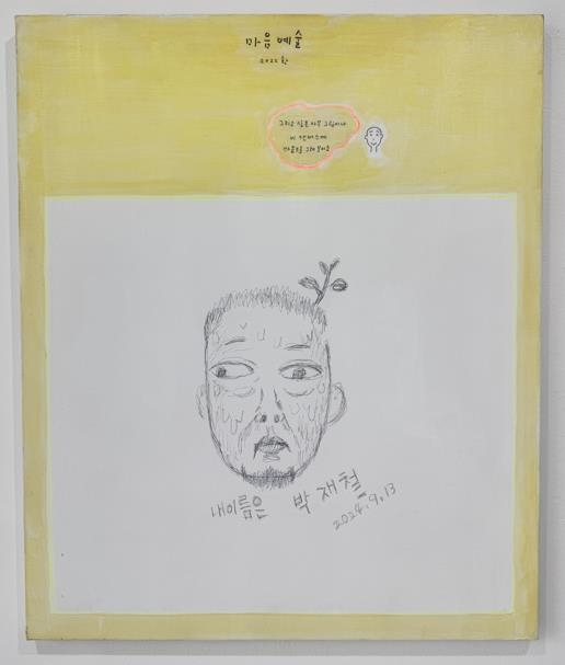전시 마지막 날에도 그림이 그려지지 않은 것을 의아하게 여긴 박 작가는 볼펜을 꺼내 캔버스에 슥슥 자기 얼굴을 그렸다. 그림 아래에는 ‘내 이름은 박재철’이라는 서명과 함께 날짜도 적었다.