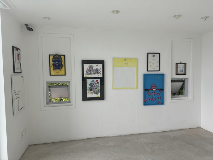 원래 전시 전경. [사진 출처 = 자하미술관] 문제는 이 작품에 적혔던 문구가 ‘그리고 싶은 그림을 그려보이소’가 아닌 ‘그리고 싶은 아무 그림이나 이 캔버스에 마음으로 그려 보이소’였다는 점이다. ‘마음으로’라는 문구를 자세히 보지 못했던 것이다.
