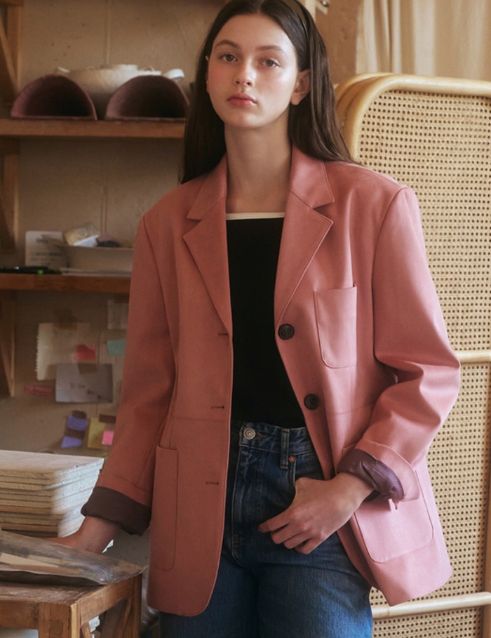 ‘언에디트’의 스웨이드 자켓 [W컨셉 제공] W컨셉 관계자는 “스웨이드 소재의 색감도 핑크,브라운 등 다양해지면서 흔하지 않은 색감을 찾는 고객도 늘어나고 있다”고 말했다. 이에 W컨셉은 현재 ‘머스트 해브 스웨이드백’이라는 주제로 올 가을 새로 나온 스웨이드백 기획전도 진행중이다.