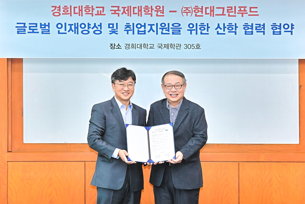 현대백화점그룹 계열사이자 식품 제조 기업인 현대그린푸드가 경희대 국제대학원과 글로벌 인재 육성·취업 지원을 위한 양해각서(MOU)를 체결했다고 17일 밝혔다.