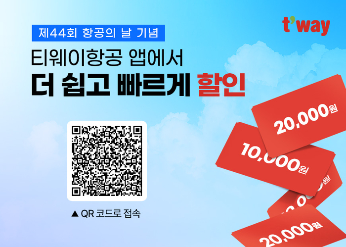 사진 = 티웨이항공 이번 특가 항공권은 오는 30일 ‘제44회 항공의 날’을 기념한 이벤트다. ‘항공의 날’은 우리나라 항공산업의 위상과 항공 종사자들의 자긍심을 높이기 위한 최초 국내선 민항기 취항 기념일이다.