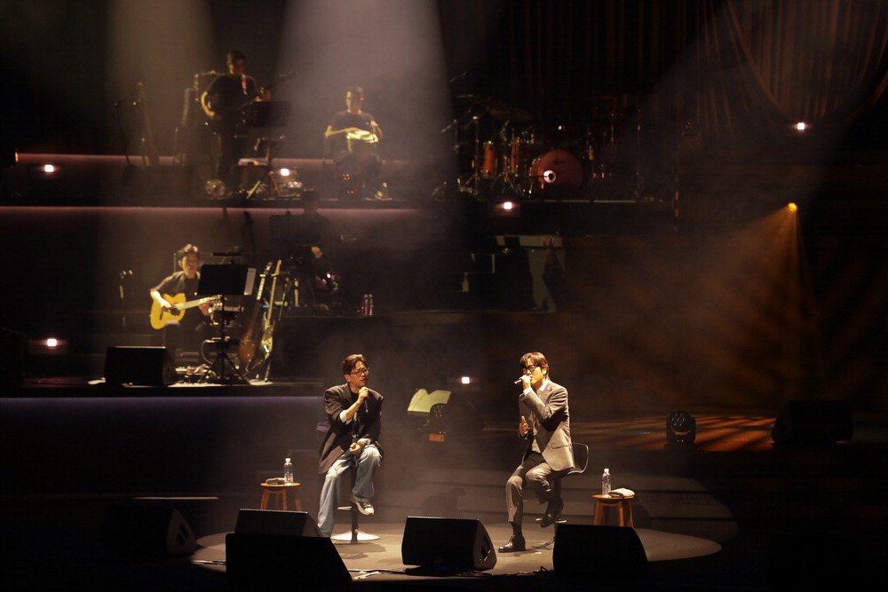 서울 세종문화회관 무대에서 공연하는 이적(왼쪽)과 김동률. 뮤직팜