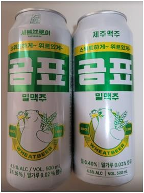 세븐브로이가 만든 곰표밀맥주(왼쪽)와 제주맥주가 만든 곰표밀맥주. [사진 출처 = 세븐브로이맥주] 국정감사에서 ‘곰표밀맥주’ 제조사였던 세븐브로이맥주와 상표권자인 대한제분의 다툼이 다시 한번 조명되며 관심이 쏠리고 있다.