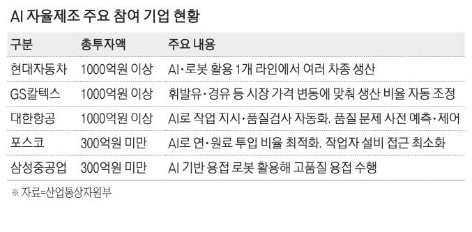 산업부 관계자는 "이번 프로젝트에는 그동안 정부 과제에 관심도가 높지 않았던 국가대표 제조기업이 대거 참여했다"면서 "제조 현장에 AI 도입이 기업의 미래 생존전략과 직결된다는 데 기업과 정부가 공감대를 이룬 결과"라고 평가했다.
