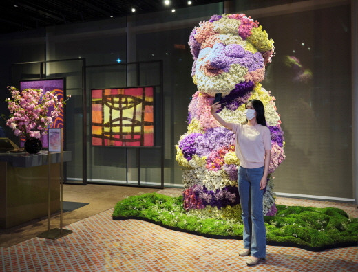 꽃하르방 기념사진 구역 / 사진=롯데관광개발 롯데관광개발 관계자는 “상징적인 기념사진 구역으로 화제를 모았던 1만 송이 생화로 제작한 꽃하르방,블루밍 피그 등의 반응이 좋아 출시한 브랜드 상품”이라며 “호텔업계에서 자체 제작한 상품의 판매량으로는 이례적인 것 같다”고 설명했다.