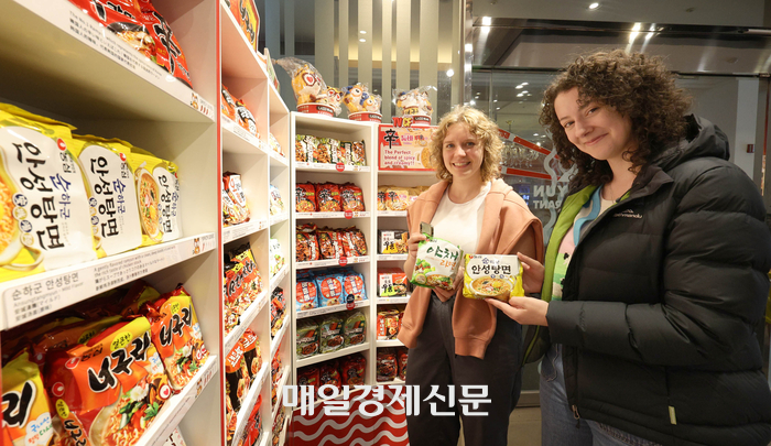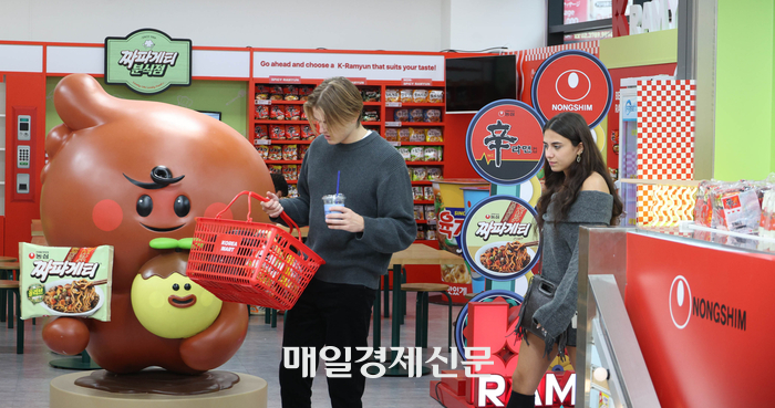 1일 한국을 찾은 외국인 관광객들이 서울의 코리아마트 라면편의점에서 라면을 고르고있다.