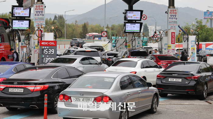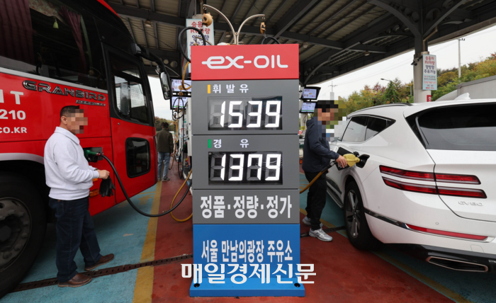 오늘부터 유류세 환원에 따라 휘발유는 리터(L)당 약 42원,액화석유가스(LPG)는 리터당 약 14원의 인상 요인이 발생할 것으로 예상된다. 산업부는 유류세 환원 이후 급격하게 가격을 인상하지 않도록 업계의 자발적인 협조를 요청했다. 사진은 1일 서울 만남의광장 주유소에 유가 정보가 표시돼 있는 모습. 2024.11.1[이충우기자]