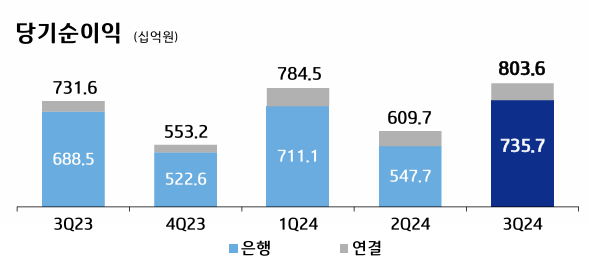 IBK기업은행 당기순이익 IBK기업은행이 올해 들어 3분기까지 2조원이 넘는 당기순이익을 거뒀다. 3분기 누적 기준으로도,3분기 단일 분기실적으로도 모두 역대 최대 실적이다. 중소기업과 소상공인 지원 확대를 통한 대출자산 성장과 비용 효율화 노력에 따른 것이다.