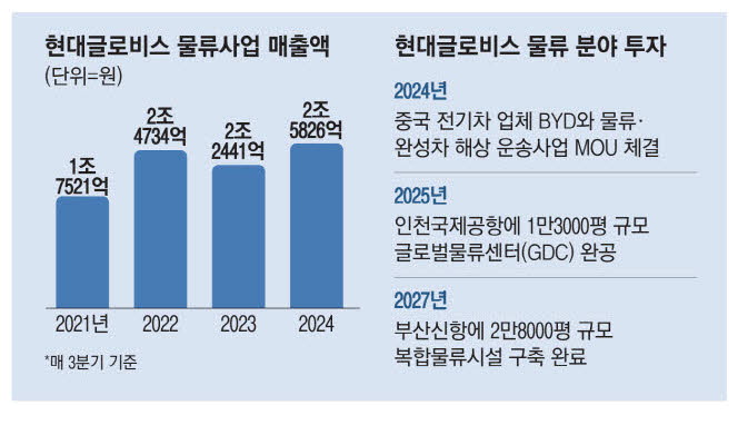 현대글로비스가 부산신항에 2만8000평 규모 복합물류시설을 구축한다. 이미 인천국제공항에 건설 중인 글로벌물류센터(GDC)를 통해 항공물류 수요 증가에 대응하는 한편,부산신항을 통해선 해상 물류사업을 확장하는 것이다. 특히 비계열사 매출 증대를 통한 자체 생존력 향상을 노린다는 포석이다.
