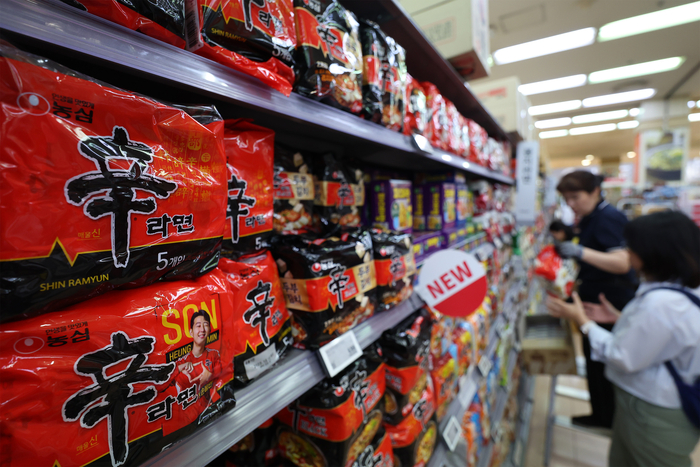 한 대형마트에 신라면이 진열돼 있다. [사진 = 연합뉴스] 농심은 올해 3분기 연결기준 매출액 8504억원,영업이익 376억원을 기록했다고 14일 공시했다.