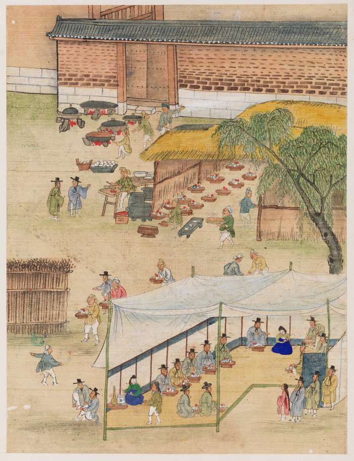 선조 대 경로잔치 음식을 준비하는 주방그림,1767년,국립고궁박물관