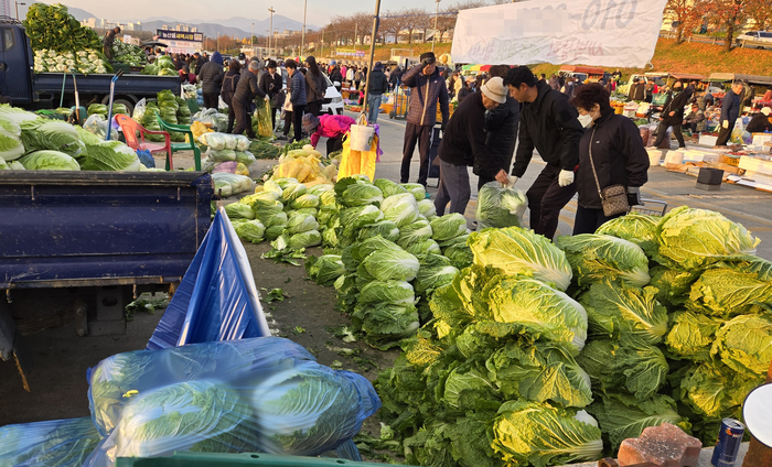 송미령 농림축산식품부 장관은 지난 19일 충북 괴산군을 찾아 배추 수급을 점검하면서 “그동안 김장 재료 가격에 걱정을 많이 했다”며 “배추와 마늘,고춧가루,젓갈류 등 대부분 재료가 평년 수준으로 안정됐다”고 말했다.
