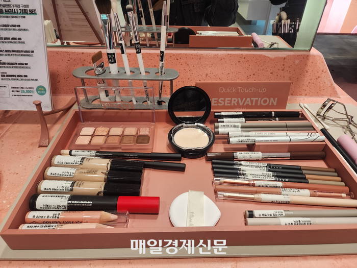 특히 2층에 위치한 롬앤 등 인기 메이크업 브랜드 공간 근처 ‘메이크업 스튜디오’와 ‘터치업 바’가 발길을 끌었다. 메이크업숍처럼 화장대로 꾸며진 이 공간에선 올리브영의 뷰티 컨설턴트들이 예약자를 대상으로 무료 메이크업 서비스를 선보였다.