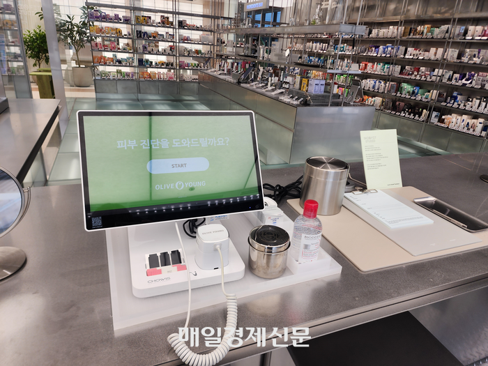 ‘올리브영N 성수’에 마련된 피부 진단 기기 모습. [사진=김금이 기자] 그밖에 젊은 고객과 외국인 관광객을 겨냥해 올리브영N 성수 한정 상품을 판매하는 ‘더 코너 굿즈숍’과 K팝 아티스트의 팝업스토어가 열리는 K팝 특화존 ‘케이팝 나우’ 등이 새롭게 소개됐다. 4층에는 올리브영 VIP 회원을 위한 아늑한 ‘멤버스 라운지’와 입점 브랜드들의 마케팅을 돕기 위한 ‘커넥트 스튜디오’가 조성됐다.