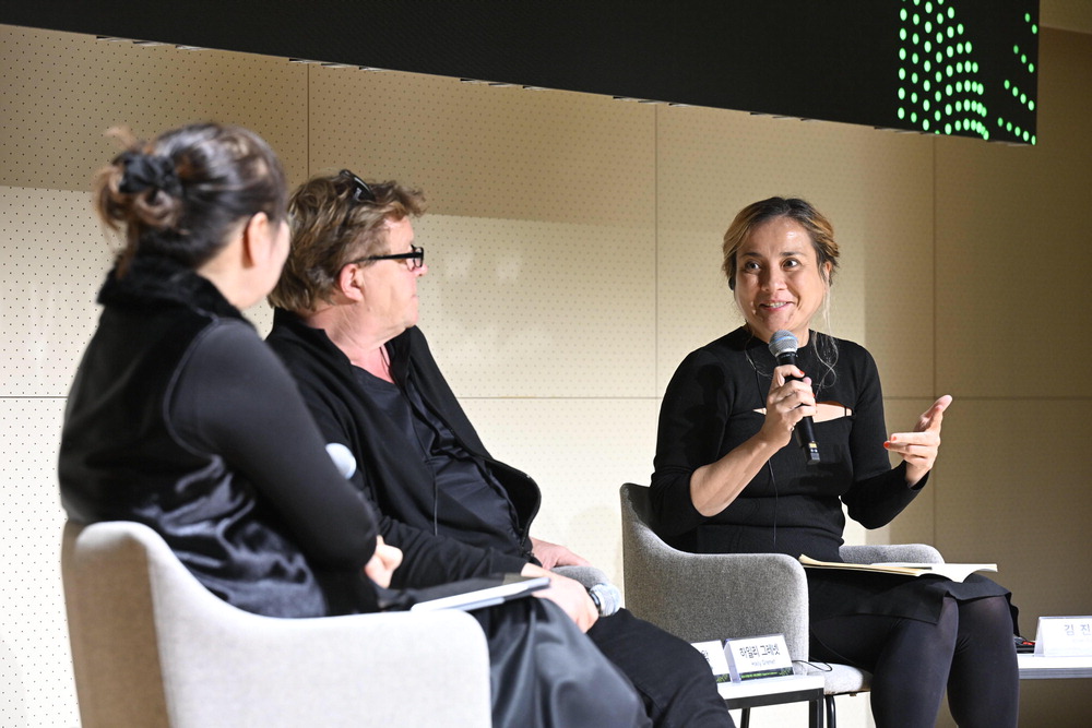 '2024 디지털 아트 국제 컨퍼런스'에서 하일리 그레넷 어라운드 비디오 아트페어 디렉터(맨 오른쪽)가 관련 시장 활성화 방안에 대해 토론하고 있다. 예술경영지원센터