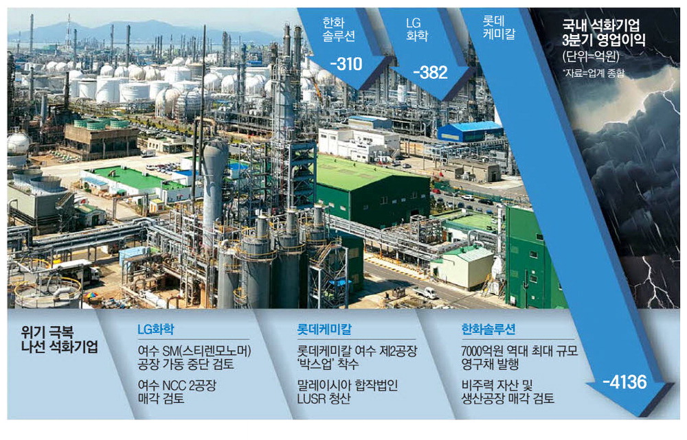 LG화학 역시 여수산단 내 스티렌모노머(SM) 공장 가동 중단을 검토하고 있다. 한화솔루션 역시 재무구조를 개선하기 위해 7000억원대 규모의 영구채를 발행했다. 업계에선 정부 차원에서 전향적 지원책이 필요하다고 한목소리로 말하고 있다.
