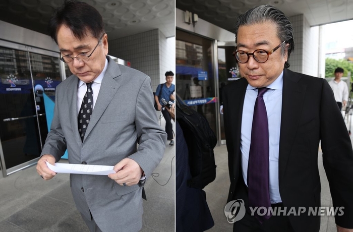 고(故)조중훈 한진그룹 창업주가 남겨둔 수백억 원 규모의 스위스 예금 채권을 상속받고도 세무 당국에 신고하지 않아 재판에 넘겨진 조남호 한진중공업홀딩스 회장(왼쪽)과 조정호 메리츠금융지주 회장이 2019년 서울 양천구 서울남부지법에서 열린 선고공판에 출석하는 모습. 한진그룹 2세인 조남호 한진중공업홀딩스 회장(73)과 조정호 메리츠금융지주 회장(66)이 해외 금융계좌에 각각 400억원씩을 보유하고도 신고하지 않은 사실이 과세 당국에 적발됐다.