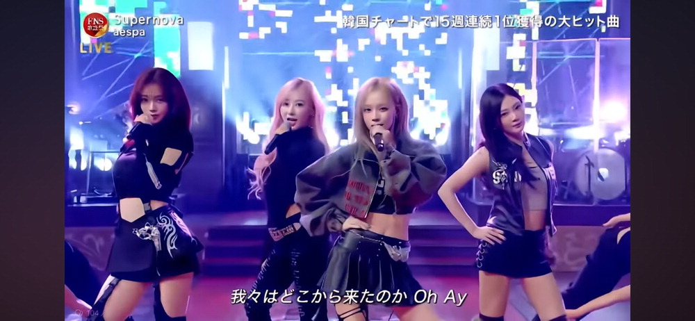 일본 후지TV FNS 가요제에 출연해 올해 히트곡 '수퍼노바' 퍼포먼스를 선보이는 에스파. 방송 캡쳐