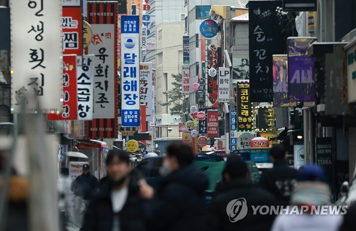 음식점이 밀집한 서울 종로구 관철동 거리. [자료=연합뉴스] 지난해 도소매업 매출이 21조원 감소했다. 도소매업 매출이 줄어든 것은 2013년 이후로 처음이다.