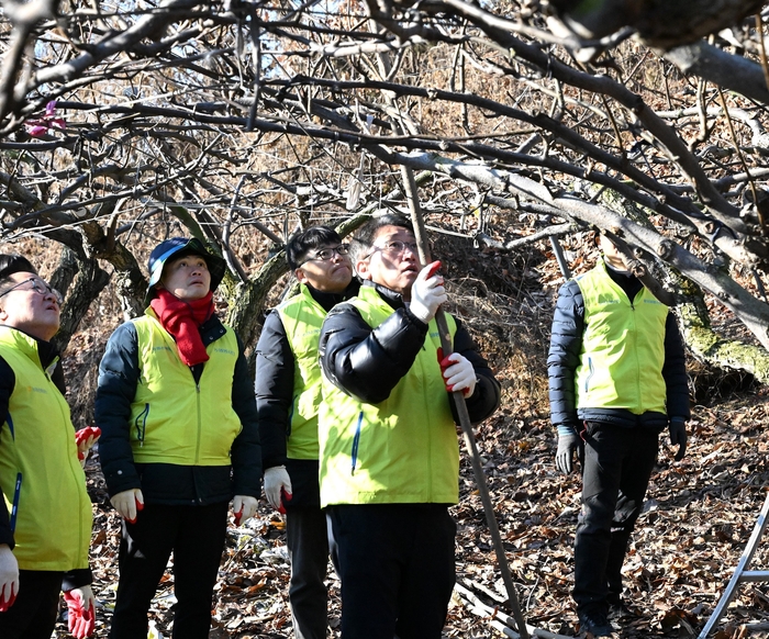지난 18일 서국동 NH농협손해보험 대표이사를 비롯한 헤아림봉사단 20여명은 일손돕기에 참여했다. 과수원에서 폭설로 내려앉은 방조망을 폐기하고 주변 정리를 하며 바쁜 농가의 일손을 도왔다.