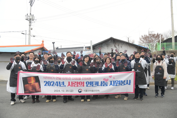 식품의약품안전처(처장 오유경)가 연말연시를 맞아 배달이 어려운 곳에 있는 기초생활보장 수급자,차상위,저소득 독거노인 가정에 연탄을 전달하는 ‘사랑의 연탄배달 자원봉사’를 실시했다고 20일 밝혔다.