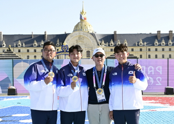 정의선 회장(가운데)이 2024 파리올림픽 양궁 국가대표 선수단과 함께 프랑스 파리 앵발리드에서 기념 촬영을 하고 있다 [사진제공=현대차그룹] 다각도적 지원을 기반으로 대한민국 양궁 국가대표팀은 파리올림픽에서 압도적 기량을 발휘했다. 여자 단체전 10연패,남자 단체전 3연패,혼성 단체전 2연패 쾌거를 이룩하고,남·녀 개인전 금메달 등 세계 양궁 역사상 최초로 금메달 5개를 획득했다.