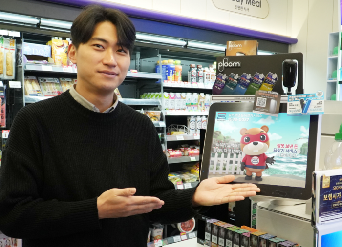 CU편의점 결제단말기(POS) 화면에서 ‘잘못 보낸 돈 되찾기 서비스’ 홍보 동영상이 송출되고 있다.[사진 제공 = 예금보험공사] 예금보험공사가 운영하는 착오송금 반환지원 제도,이른바 ‘잘못 보낸 돈 되찾기 서비스’를 소비자 접점이 많은 CU편의점에서 홍보에 나선다.