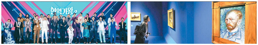 종합편성채널 MBN이 개국 30주년을 맞은 가운데 '현역가왕2'(왼쪽)가 두 자릿수 시청률을 돌파하며 트로트 열풍을 이끌고 있고,개국 30주년 기념 전시회 '불멸의 화가 반 고흐'가 인기몰이 중이다. MBN