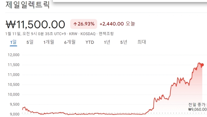 10일 제일일렉트릭 주가. <자료=구글파이낸스>