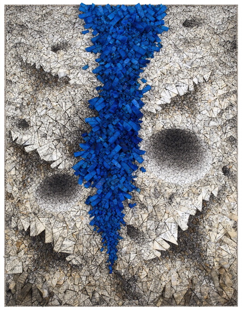 전통 한지로 감싼 크고 작은 스티로폼 삼각기둥 조각들이 거대한 형상을 이루고 있다. 전광영 작가가 한지 조각들로 빚은 '마음의 대지'다. 적게는 수천 개,많게는 수만 개에 이르는 한지 조각들은 촘촘하게 화면과 공간을 채운 채 거울처럼 우리 마음을 들여다보게 한다. 여기에는 현대사회의 불안과 위기감,치유와 화합이 모두 담겨 있다. 돌출된 부분이나 어두운 타원형 웅덩이,다양한 색으로 뒤덮여 글자의 내용이 잘 보이지 않는 한지 조각들은 우리 삶에서 나타나는 여러 충돌의 결과를 상징한다.