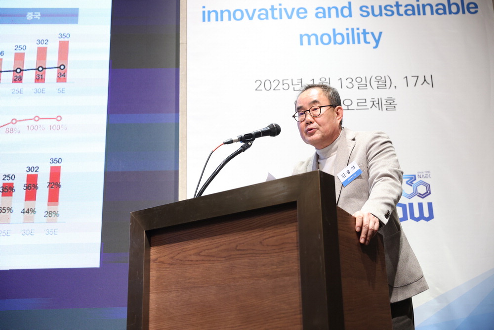 이날 김창환 현대차 부사장은 전동화 전환 관점에서 중국의 빠른 발전 속도를 우려했다. 김 부사장은 "전기차 캐즘(일시적 수요 정체)이라고 하지만,중국은 캐즘을 경험하고 있지 않다"고 지적했다. 중국은 정부,인력,인프라스트럭처 지원 차원에서 한국과 차이가 커 전기차 성장이 빠르다는 것이다. 중국은 2035년까지 신차 중 전기차 비율을 50% 이상으로 높이겠다고 선언했으나 올해 목표를 달성할 것으로 보인다.
